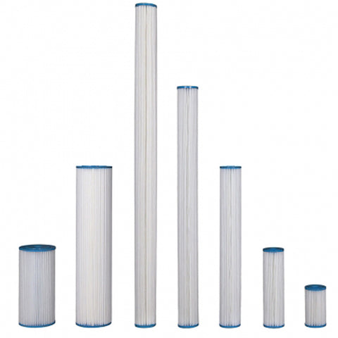 Cartridges are formed around a polypropylene core, with the polyester media secured by bonded vinyl plastisol end caps to ensure filter integrity An economic, versatile and high flow capacity pre-filter The large surface area of the Pleat creates a filter with superior dirt holding capacity Available in large diameter 10" and 20" lengths for reduced cartridge changeout frequency.